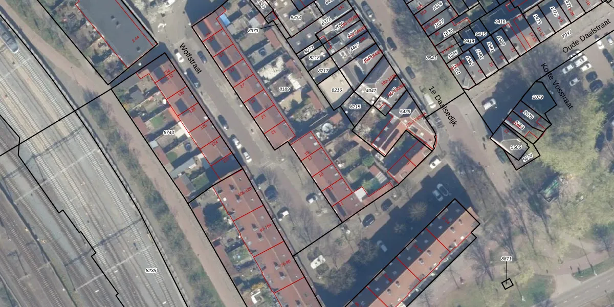 Het perceel waarop Wolfstraat 19 staat heeft een oppervlakte van 1960 m². Dit is een zeer groot perceel. De perceeloppervlakte wordt geregistreerd door het Kadaster. Gedetailleerde informatie over de maten van dit perceel kunt u vinden in het rapport Kadastrale kaart met maatvoering van Wolfstraat 19.