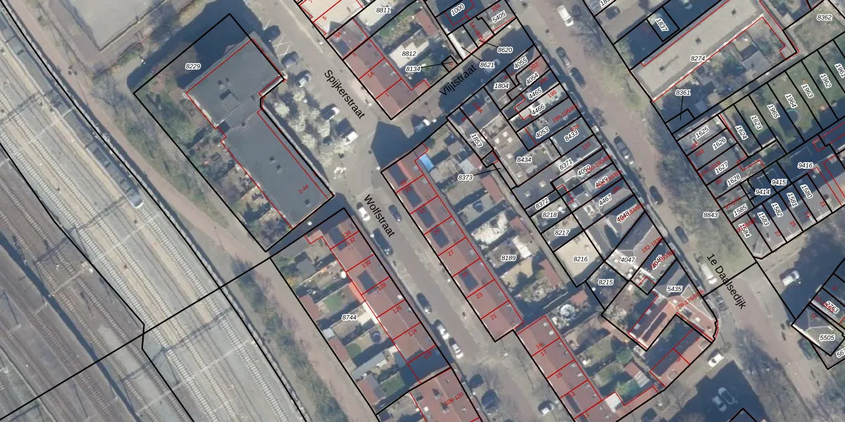 Het perceel waarop Wolfstraat 31 staat heeft een oppervlakte van 1960 m². Dit is een zeer groot perceel. De perceeloppervlakte wordt geregistreerd door het Kadaster. Gedetailleerde informatie over de maten van dit perceel kunt u vinden in het rapport Kadastrale kaart met maatvoering van Wolfstraat 31.
