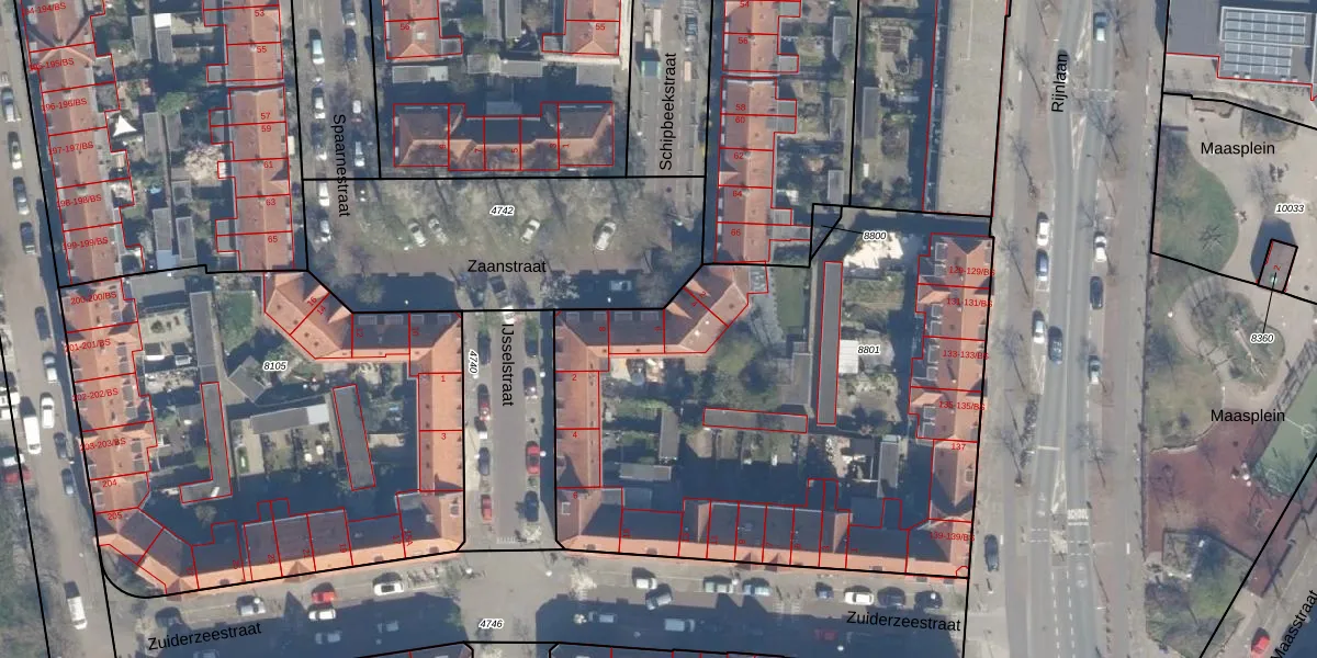 Het perceel waarop Zaanstraat 6 staat heeft een oppervlakte van 3013 m². Dit is een zeer groot perceel. De perceeloppervlakte wordt geregistreerd door het Kadaster. Gedetailleerde informatie over de maten van dit perceel kunt u vinden in het rapport Kadastrale kaart met maatvoering van Zaanstraat 6.