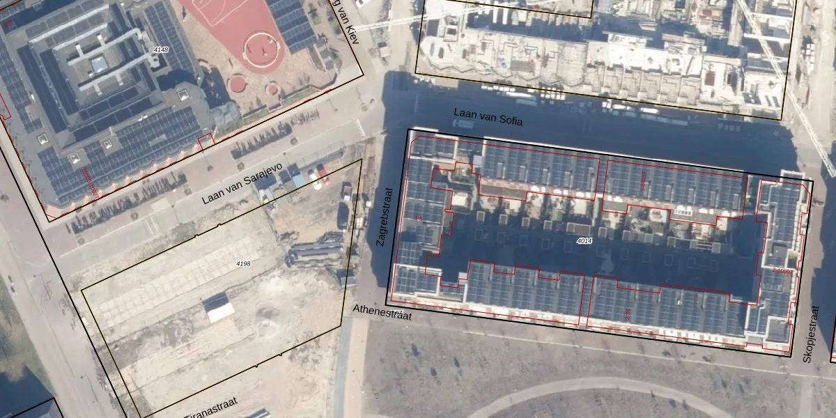 Het perceel waarop Zagrebstraat 3 staat heeft een oppervlakte van 4145 m². Dit is een zeer groot perceel. De perceeloppervlakte wordt geregistreerd door het Kadaster. Gedetailleerde informatie over de maten van dit perceel kunt u vinden in het rapport Kadastrale kaart met maatvoering van Zagrebstraat 3.