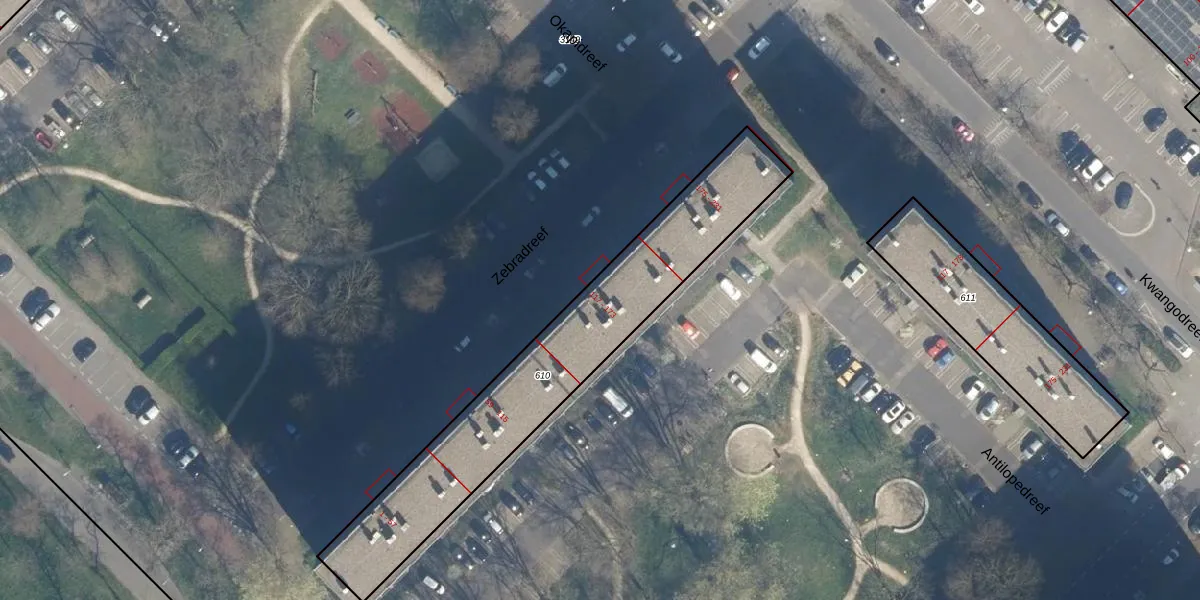 Het perceel waarop Zebradreef 147 staat heeft een oppervlakte van 1096 m². Dit is een zeer groot perceel. De perceeloppervlakte wordt geregistreerd door het Kadaster. Gedetailleerde informatie over de maten van dit perceel kunt u vinden in het rapport Kadastrale kaart met maatvoering van Zebradreef 147.