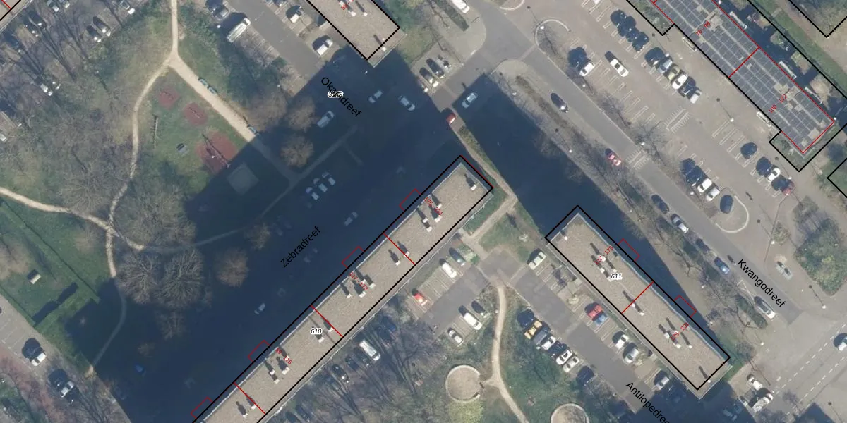 Het perceel waarop Zebradreef 217 staat heeft een oppervlakte van 1096 m². Dit is een zeer groot perceel. De perceeloppervlakte wordt geregistreerd door het Kadaster. Gedetailleerde informatie over de maten van dit perceel kunt u vinden in het rapport Kadastrale kaart met maatvoering van Zebradreef 217.