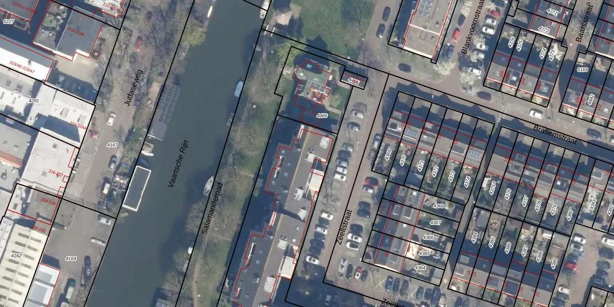 Het perceel waarop het adres ligt is UTT00-P-4317. De afkorting 'UTT00' staat voor kadastrale gemeente Utrecht. De gemiddelde perceeloppervlakte in de kadastrale gemeente Utrecht is 1438,48 m². Dit perceel is met zijn 2870 m² dus groter dan gemiddeld. Het kleinste perceel in de kadastrale gemeente is 0 m² groot. De grootste perceeloppervlakte is 90,1 ha. Er zijn 72 adressen aanwezig op het perceel. De huidige grenzen van het perceel zijn digitaal in de Basisregistratie Kadaster (BRK) geregistreerd op 19-09-1997.
