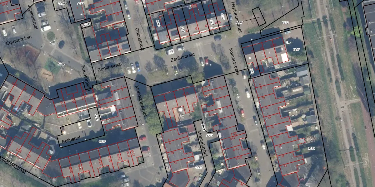 Het perceel waarop Zenithstraat 11 staat heeft een oppervlakte van 3508 m². Dit is een zeer groot perceel. De perceeloppervlakte wordt geregistreerd door het Kadaster. Gedetailleerde informatie over de maten van dit perceel kunt u vinden in het rapport Kadastrale kaart met maatvoering van Zenithstraat 11.