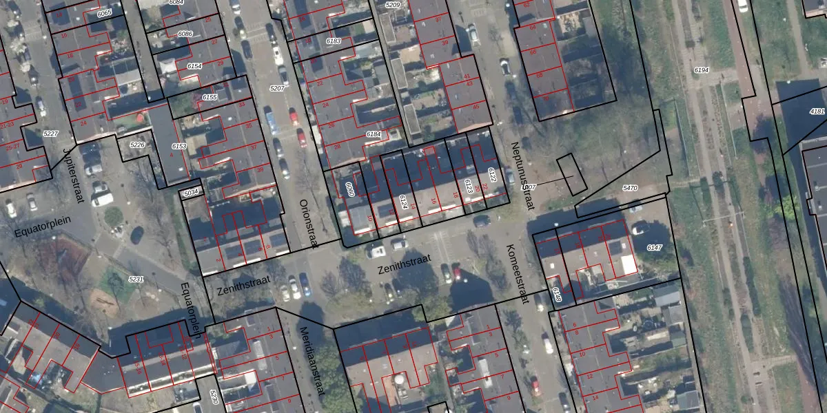 Het perceel waarop Zenithstraat 14 staat heeft een oppervlakte van 105 m². Dit is een middelgroot perceel. De perceeloppervlakte wordt geregistreerd door het Kadaster. Gedetailleerde informatie over de maten van dit perceel kunt u vinden in het rapport Kadastrale kaart met maatvoering van Zenithstraat 14.