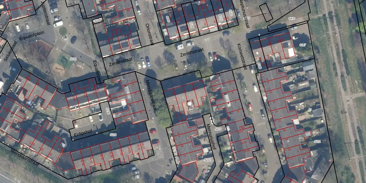 Het perceel waarop Zenithstraat 7 staat heeft een oppervlakte van 3508 m². Dit is een zeer groot perceel. De perceeloppervlakte wordt geregistreerd door het Kadaster. Gedetailleerde informatie over de maten van dit perceel kunt u vinden in het rapport Kadastrale kaart met maatvoering van Zenithstraat 7.