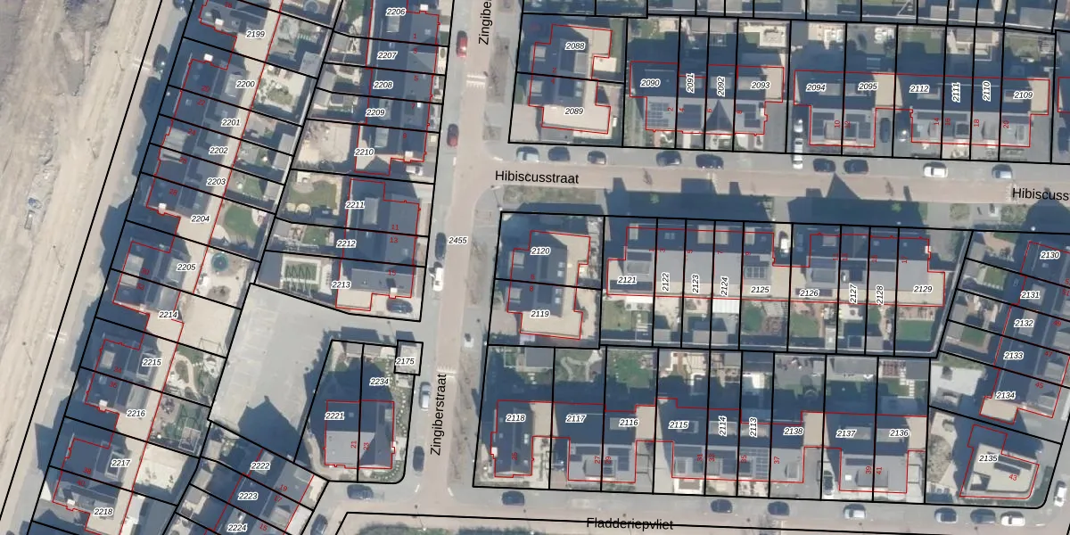Gebruik de zoekbalk of klik op een perceel voor informatie over de adressen binnen dit perceel.
