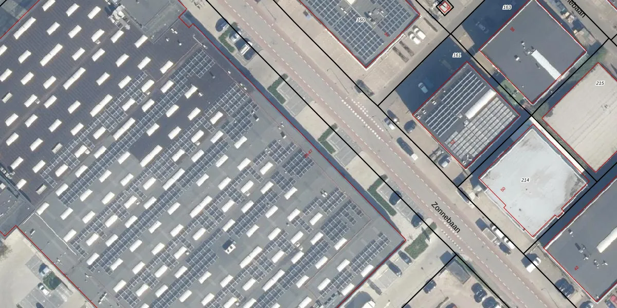 Het perceel waarop Zonnebaan 25 staat heeft een oppervlakte van 2,1 ha. Dit is een zeer groot perceel. De perceeloppervlakte wordt geregistreerd door het Kadaster. Gedetailleerde informatie over de maten van dit perceel kunt u vinden in het rapport Kadastrale kaart met maatvoering van Zonnebaan 25.