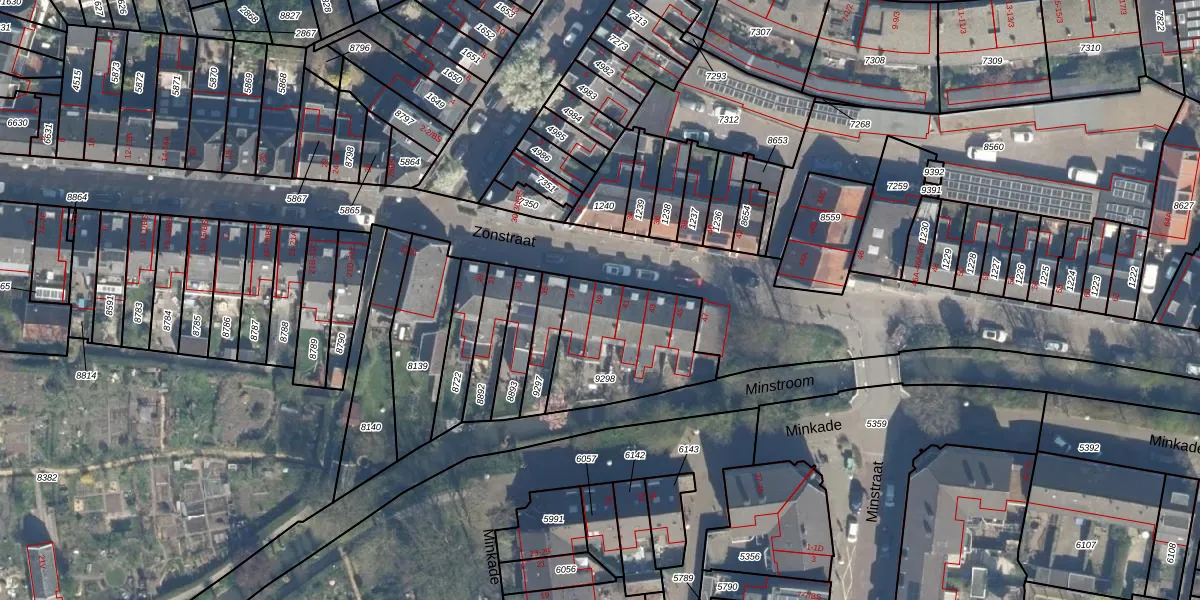 Het perceel waarop Zonstraat 39 staat heeft een oppervlakte van 462 m². Dit is een groot perceel. De perceeloppervlakte wordt geregistreerd door het Kadaster. Gedetailleerde informatie over de maten van dit perceel kunt u vinden in het rapport Kadastrale kaart met maatvoering van Zonstraat 39.