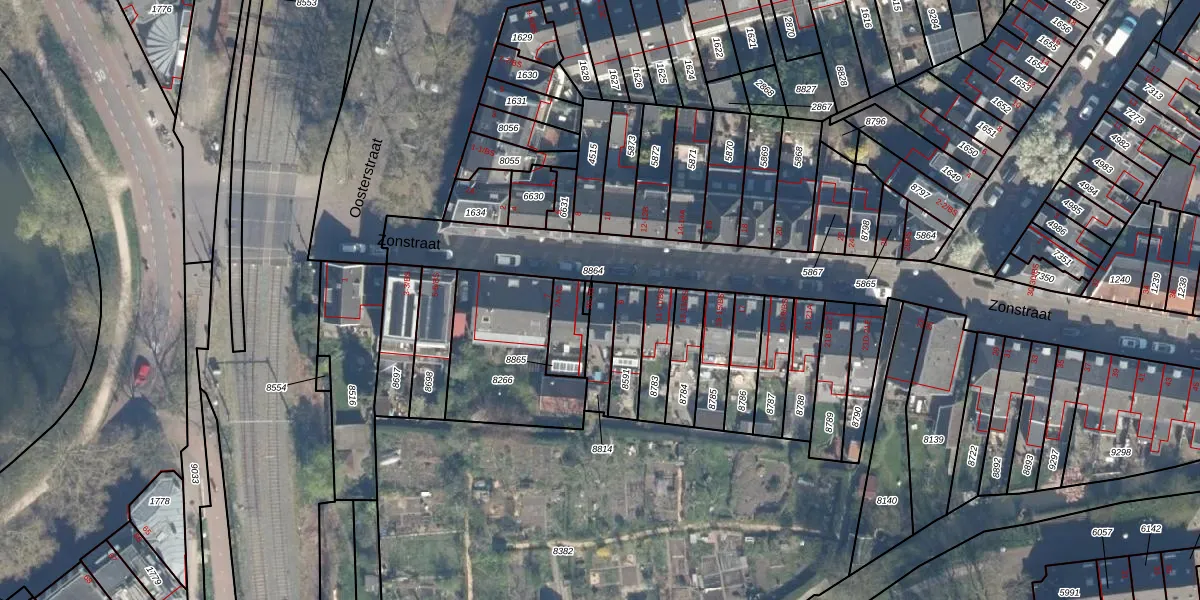 Het perceel waarop Zonstraat 7-D staat heeft een oppervlakte van 91 m². Dit is een klein perceel. De perceeloppervlakte wordt geregistreerd door het Kadaster. Gedetailleerde informatie over de maten van dit perceel kunt u vinden in het rapport Kadastrale kaart met maatvoering van Zonstraat 7-D.