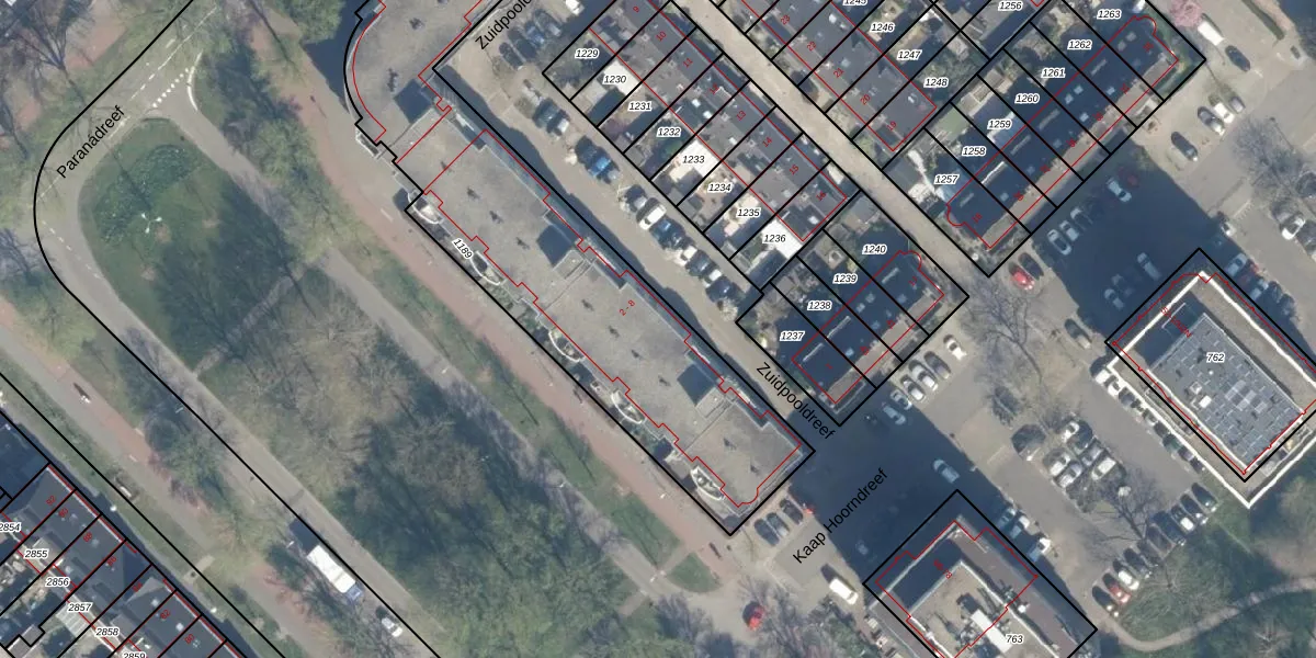 Het perceel waarop Zuidpooldreef 3 staat heeft een oppervlakte van 2110 m². Dit is een zeer groot perceel. De perceeloppervlakte wordt geregistreerd door het Kadaster. Gedetailleerde informatie over de maten van dit perceel kunt u vinden in het rapport Kadastrale kaart met maatvoering van Zuidpooldreef 3.