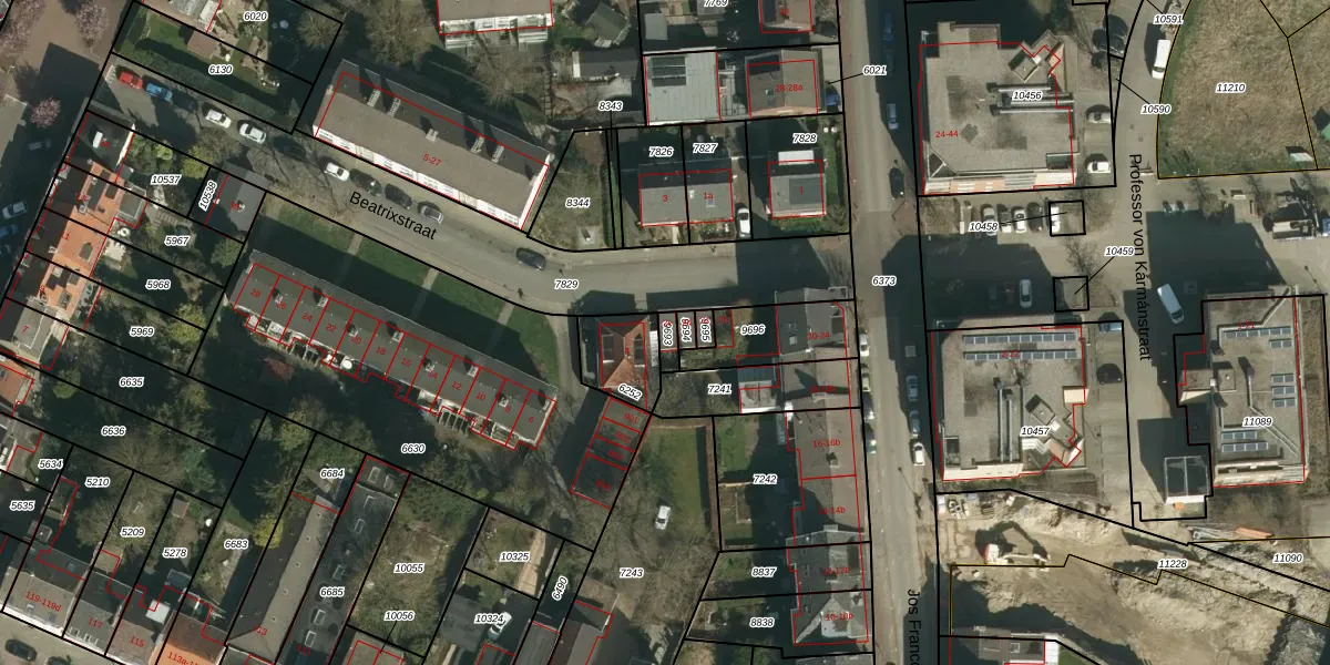 Het perceel waarop Beatrixstraat 2-e staat heeft een oppervlakte van 27 m². Dit is een klein perceel. De perceeloppervlakte wordt geregistreerd door het Kadaster. Gedetailleerde informatie over de maten van dit perceel kunt u vinden in het rapport Kadastrale kaart met maatvoering van Beatrixstraat 2-e.