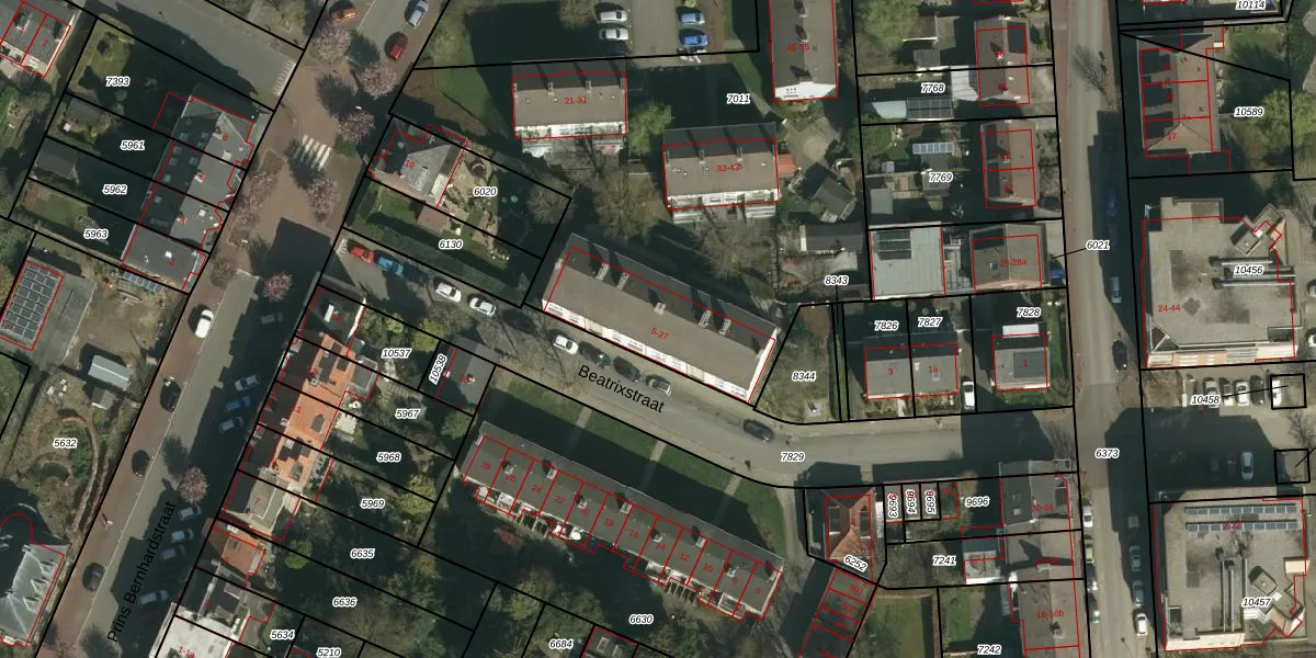 Het perceel waarop Beatrixstraat 23 staat heeft een oppervlakte van 4019 m². Dit is een zeer groot perceel. De perceeloppervlakte wordt geregistreerd door het Kadaster. Gedetailleerde informatie over de maten van dit perceel kunt u vinden in het rapport Kadastrale kaart met maatvoering van Beatrixstraat 23.