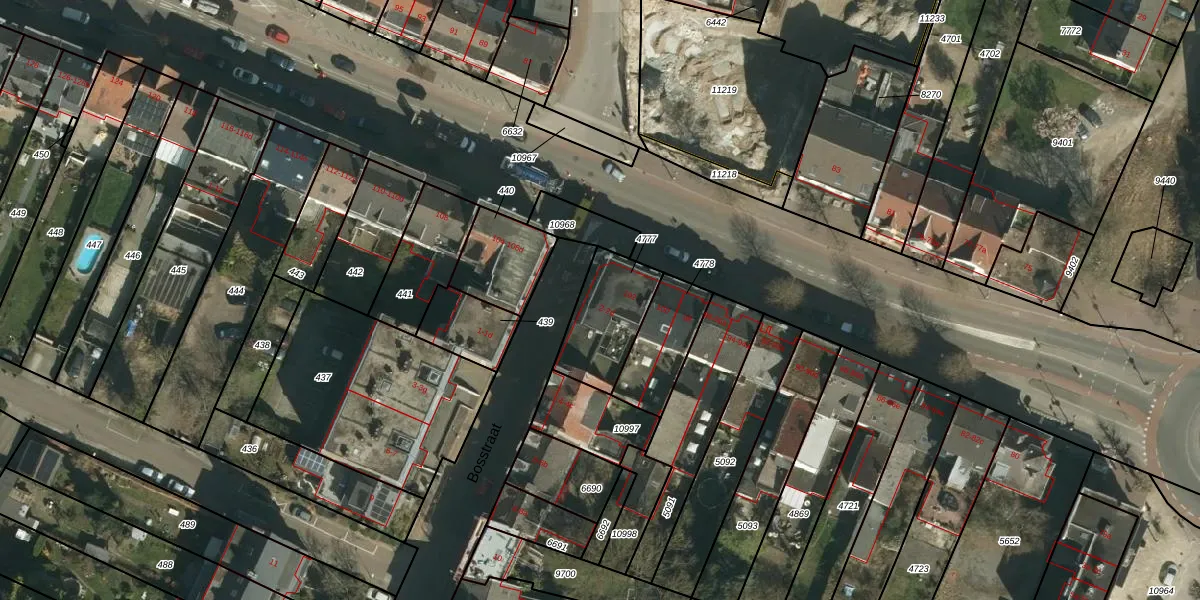 Het perceel waarop Bosstraat 2 staat heeft een oppervlakte van 252 m². Dit is een middelgroot perceel. De perceeloppervlakte wordt geregistreerd door het Kadaster. Gedetailleerde informatie over de maten van dit perceel kunt u vinden in het rapport Kadastrale kaart met maatvoering van Bosstraat 2.