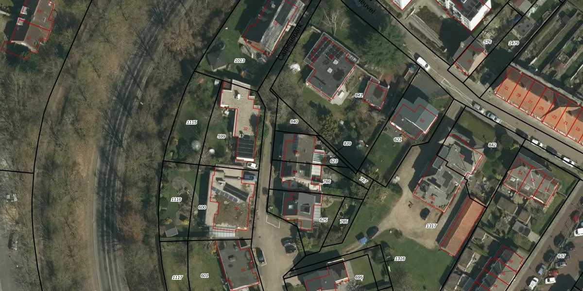 Het perceel waarop Camilluspark 25 staat heeft een oppervlakte van 202 m². Dit is een middelgroot perceel. De perceeloppervlakte wordt geregistreerd door het Kadaster. Gedetailleerde informatie over de maten van dit perceel kunt u vinden in het rapport Kadastrale kaart met maatvoering van Camilluspark 25.