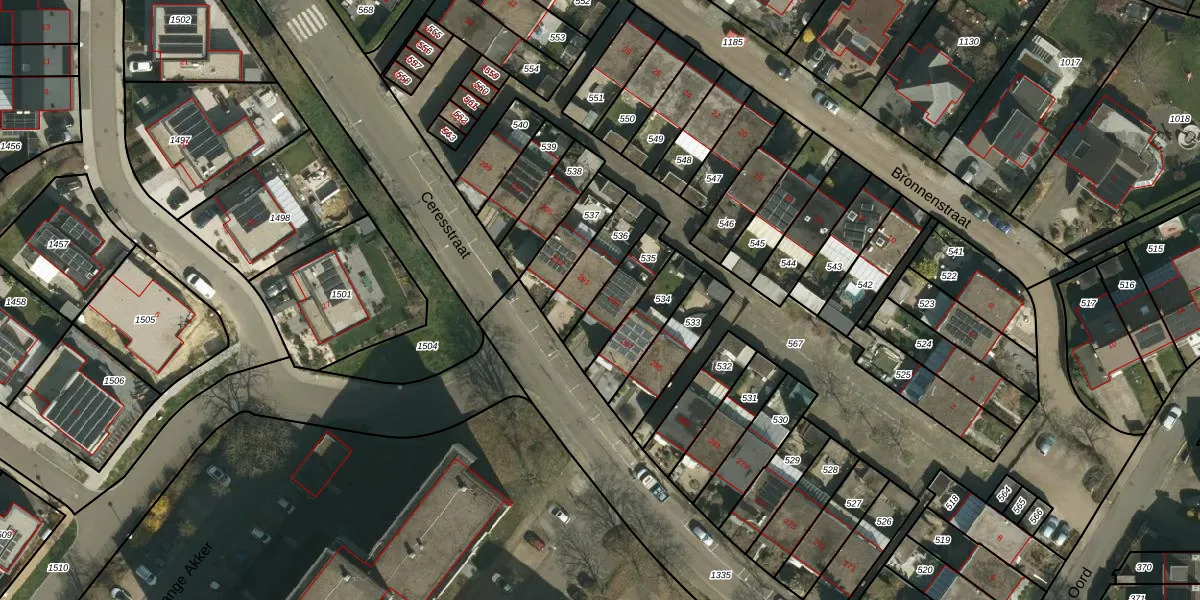 Het perceel waarop Ceresstraat 289 staat heeft een oppervlakte van 155 m². Dit is een middelgroot perceel. De perceeloppervlakte wordt geregistreerd door het Kadaster. Gedetailleerde informatie over de maten van dit perceel kunt u vinden in het rapport Kadastrale kaart met maatvoering van Ceresstraat 289.