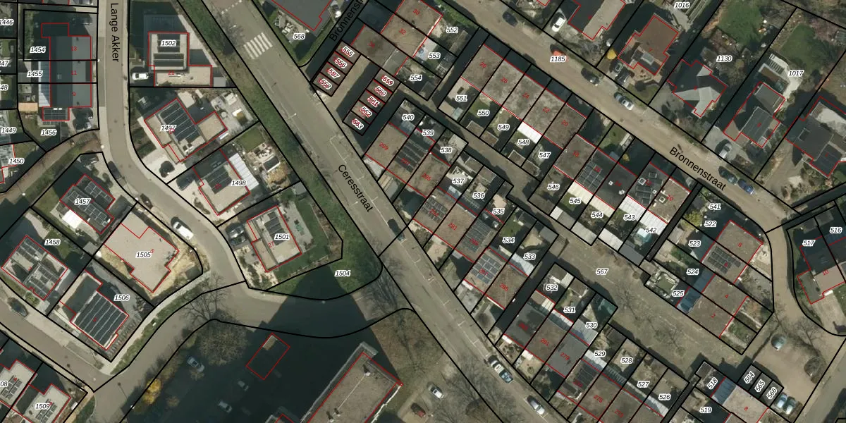 Het perceel waarop Ceresstraat 293 staat heeft een oppervlakte van 141 m². Dit is een middelgroot perceel. De perceeloppervlakte wordt geregistreerd door het Kadaster. Gedetailleerde informatie over de maten van dit perceel kunt u vinden in het rapport Kadastrale kaart met maatvoering van Ceresstraat 293.