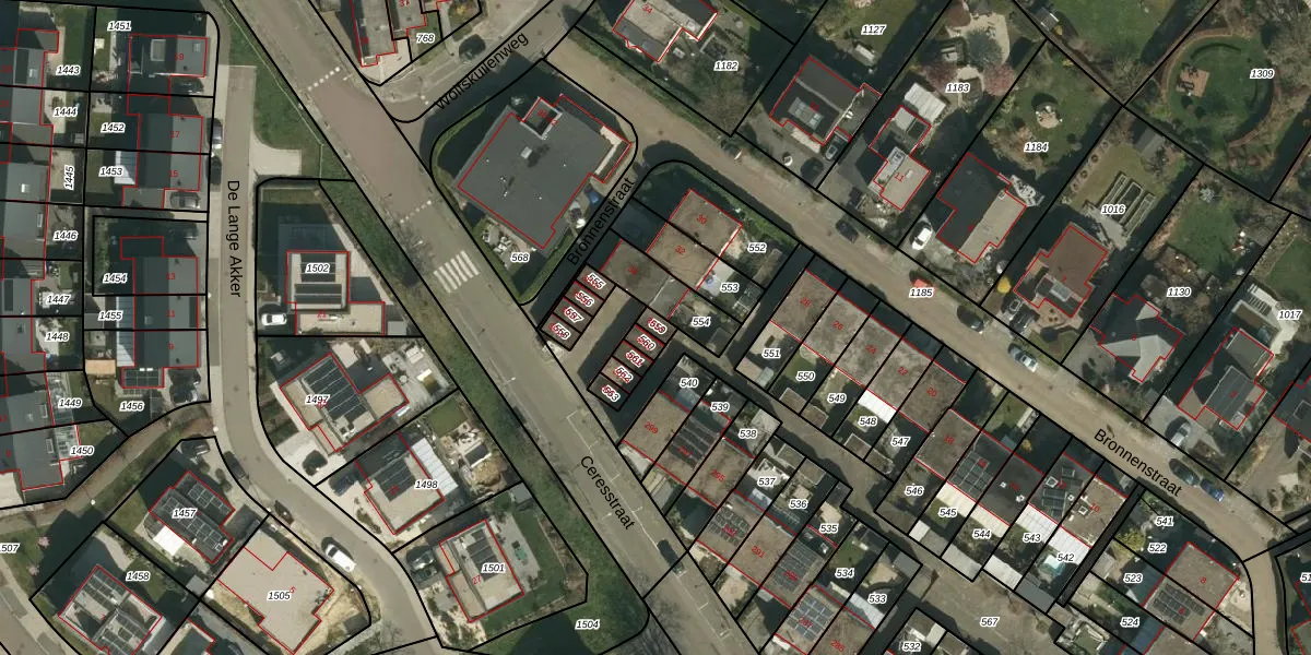 Gebruik de zoekbalk of klik op een perceel voor informatie over de adressen binnen dit perceel.