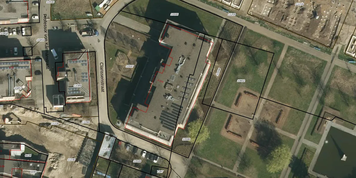 Het perceel waarop Clarissenstraat 66 staat heeft een oppervlakte van 3055 m². Dit is een zeer groot perceel. De perceeloppervlakte wordt geregistreerd door het Kadaster. Gedetailleerde informatie over de maten van dit perceel kunt u vinden in het rapport Kadastrale kaart met maatvoering van Clarissenstraat 66.