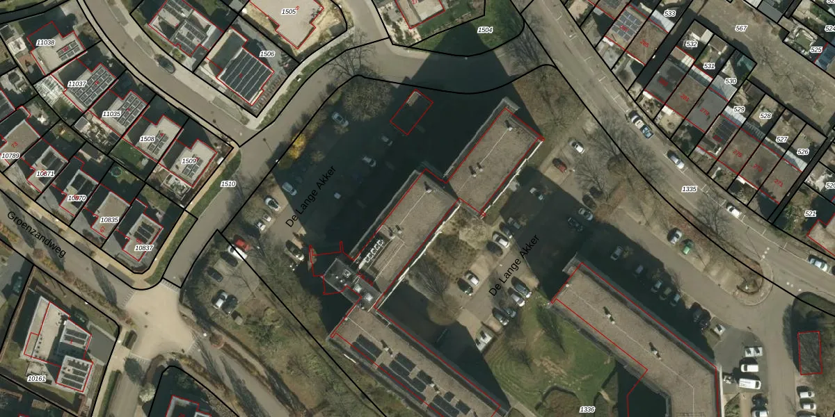 Het perceel waarop De Lange Akker 374 staat heeft een oppervlakte van 1,5 ha. Dit is een zeer groot perceel. De perceeloppervlakte wordt geregistreerd door het Kadaster. Gedetailleerde informatie over de maten van dit perceel kunt u vinden in het rapport Kadastrale kaart met maatvoering van De Lange Akker 374.