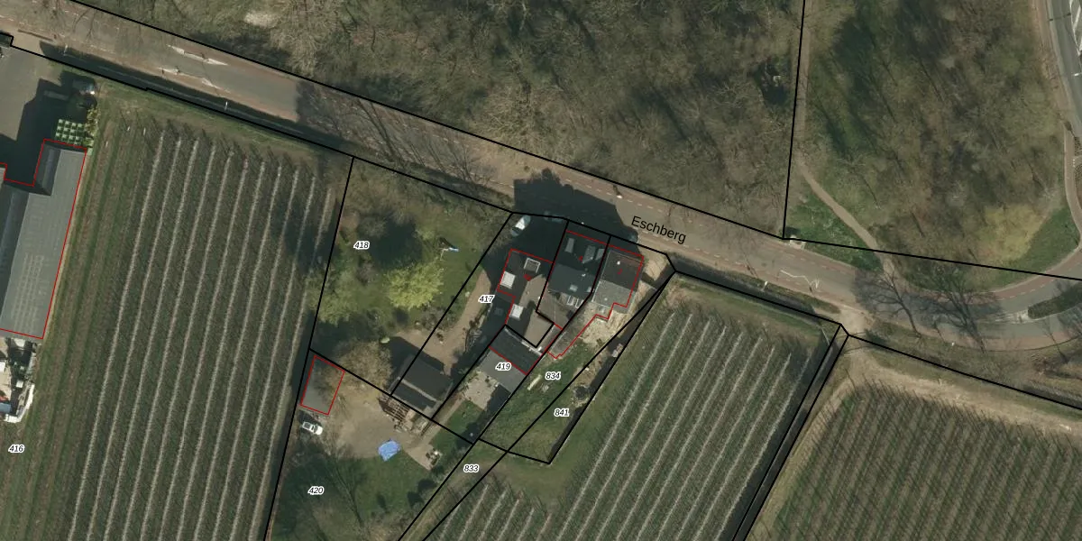 Het perceel waarop Eschberg 4-a staat heeft een oppervlakte van 495 m². Dit is een groot perceel. De perceeloppervlakte wordt geregistreerd door het Kadaster. Gedetailleerde informatie over de maten van dit perceel kunt u vinden in het rapport Kadastrale kaart met maatvoering van Eschberg 4-a.
