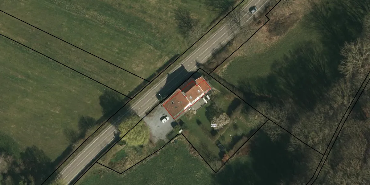 Het perceel waarop het adres ligt is VAA00-H-758. De afkorting 'VAA00' staat voor kadastrale gemeente Vaals. De gemiddelde perceelgrootte in Vaals is 4161,97 m². Dit perceel is kleiner: de perceeloppervlakte bedraagt 2390 m². Het kleinste perceel in de kadastrale gemeente is 0 m² groot. De grootste perceeloppervlakte is 46,4 ha. Op het perceel bevinden zich geen andere adressen. De laatste wijziging in het de Basisregistratie Kadaster (BRK) was op 04-10-2012.