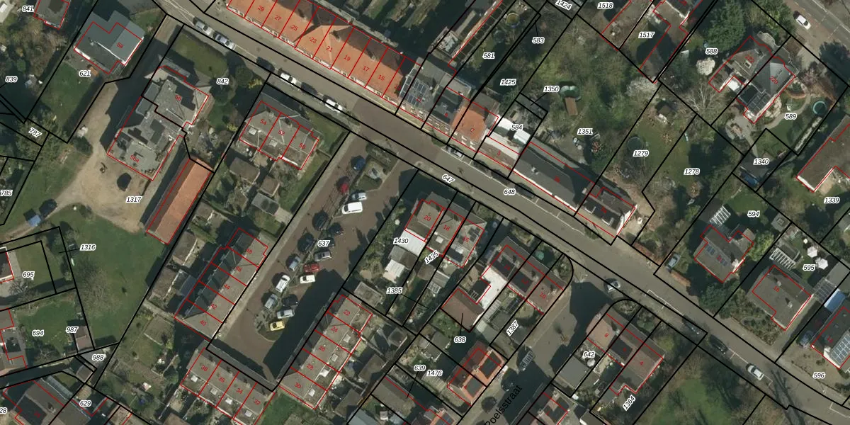 Het perceel waarop Heuvel 20 staat heeft een oppervlakte van 381 m². Dit is een groot perceel. De perceeloppervlakte wordt geregistreerd door het Kadaster. Gedetailleerde informatie over de maten van dit perceel kunt u vinden in het rapport Kadastrale kaart met maatvoering van Heuvel 20.