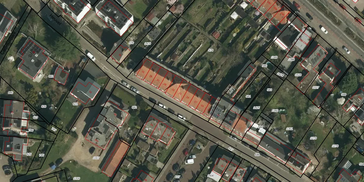 Heuvel 21 is gelegen op kadastraal perceel VAA00E578. Deze kadastrale aanduiding is uniek en wordt gebruikt door het Kadaster om eigendomsrechten en andere zakelijke rechten vast te leggen. Het perceel maakt onderdeel uit van de kadastrale gemeente Vaals.