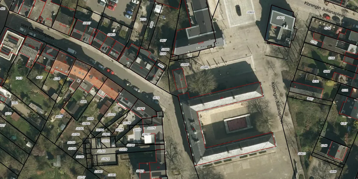 Het perceel waarop Koningin Julianaplein 47 staat heeft een oppervlakte van 7816 m². Dit is een zeer groot perceel. De perceeloppervlakte wordt geregistreerd door het Kadaster. Gedetailleerde informatie over de maten van dit perceel kunt u vinden in het rapport Kadastrale kaart met maatvoering van Koningin Julianaplein 47.