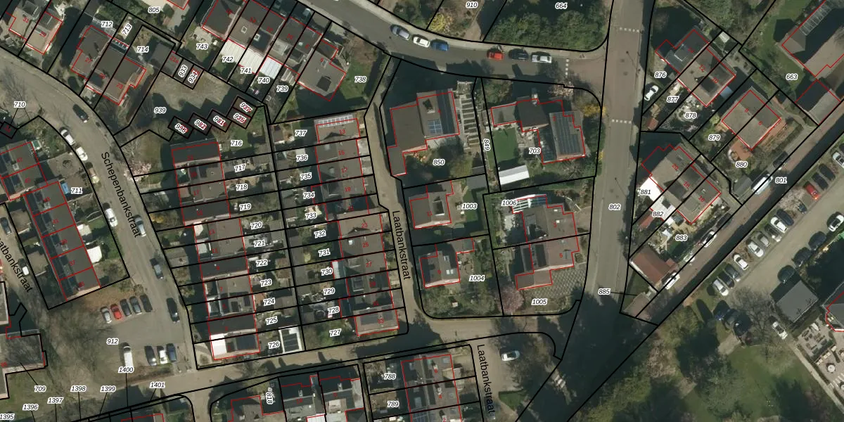 Laatbankstraat 11 is gelegen op kadastraal perceel VAA00E1003. Deze kadastrale aanduiding is uniek en wordt gebruikt door het Kadaster om eigendomsrechten en andere zakelijke rechten vast te leggen. Het perceel maakt onderdeel uit van de kadastrale gemeente Vaals.