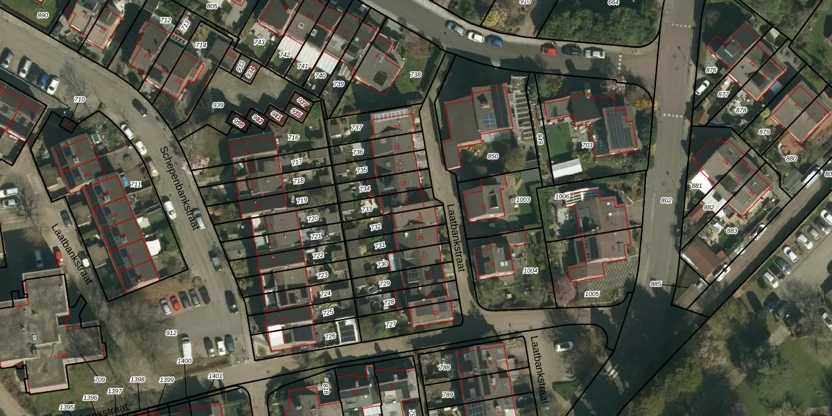 Gebruik de zoekbalk of klik op een perceel voor informatie over de adressen binnen dit perceel.