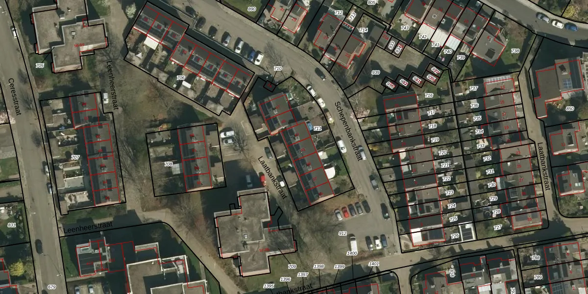 Het perceel waarop Laatbankstraat 41 staat heeft een oppervlakte van 915 m². Dit is een groot perceel. De perceeloppervlakte wordt geregistreerd door het Kadaster. Gedetailleerde informatie over de maten van dit perceel kunt u vinden in het rapport Kadastrale kaart met maatvoering van Laatbankstraat 41.