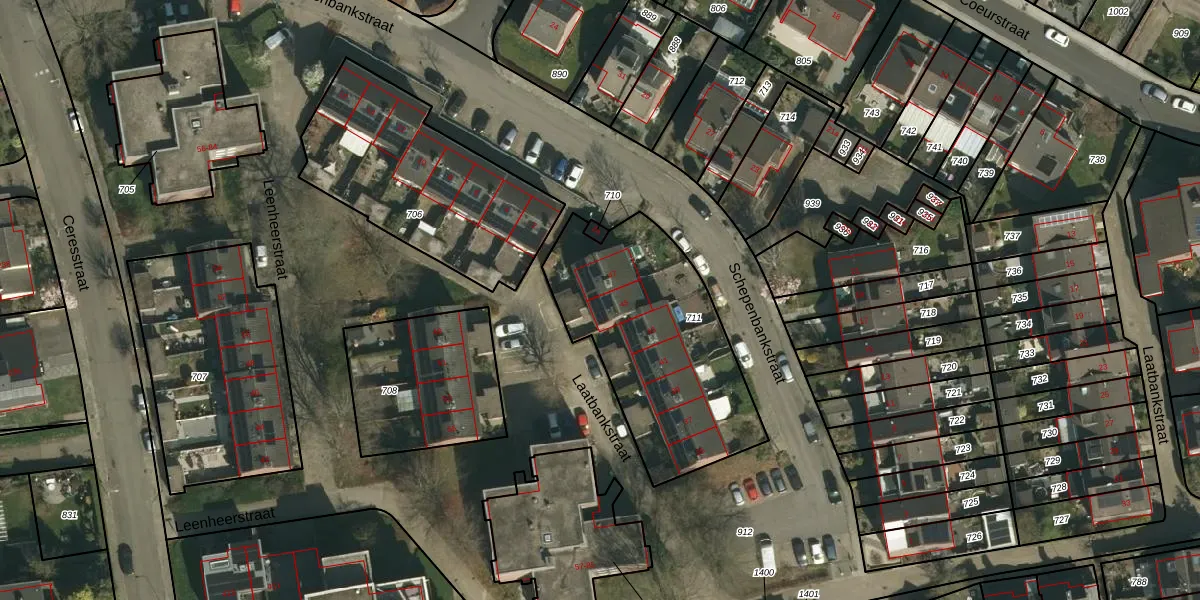 Het perceel waarop Laatbankstraat 45 staat heeft een oppervlakte van 915 m². Dit is een groot perceel. De perceeloppervlakte wordt geregistreerd door het Kadaster. Gedetailleerde informatie over de maten van dit perceel kunt u vinden in het rapport Kadastrale kaart met maatvoering van Laatbankstraat 45.