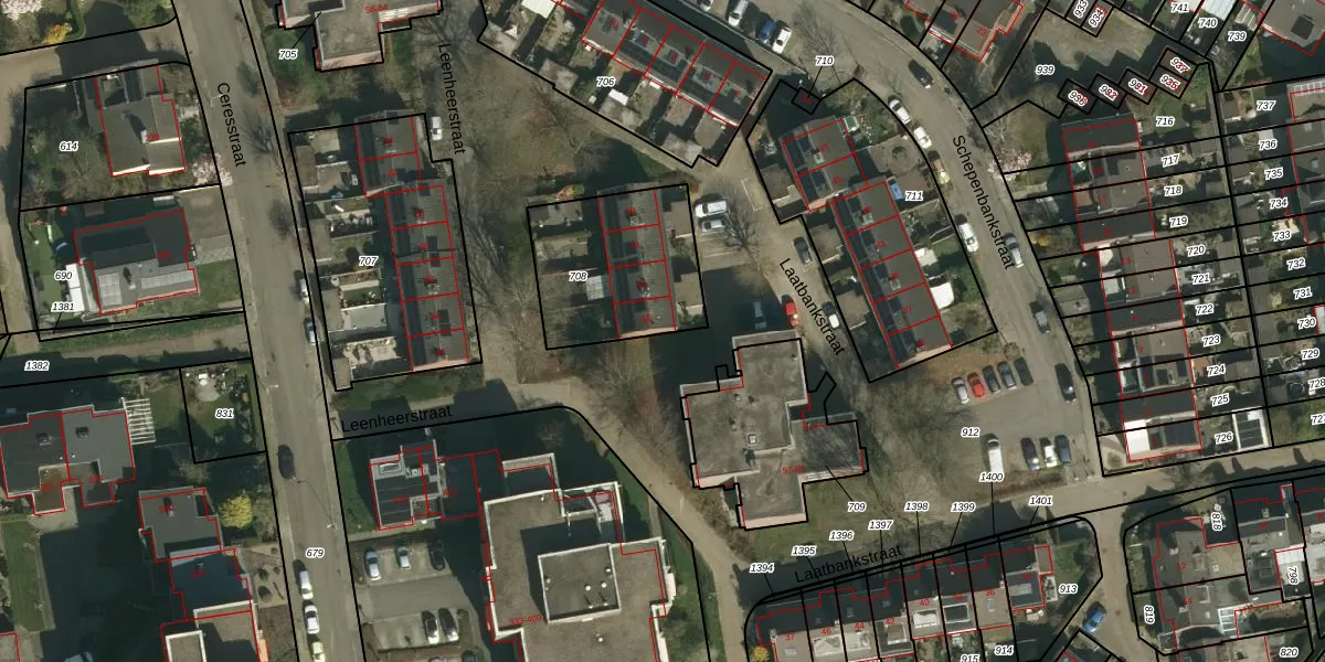 Het perceel waarop Laatbankstraat 55 staat heeft een oppervlakte van 536 m². Dit is een groot perceel. De perceeloppervlakte wordt geregistreerd door het Kadaster. Gedetailleerde informatie over de maten van dit perceel kunt u vinden in het rapport Kadastrale kaart met maatvoering van Laatbankstraat 55.