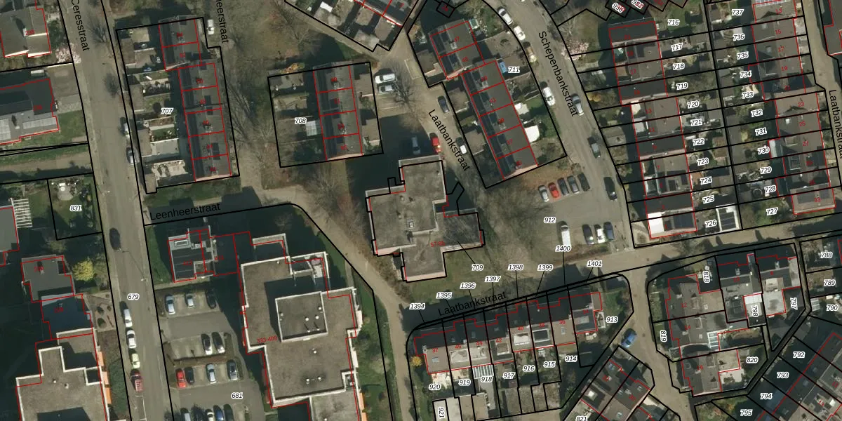 Het perceel waarop Laatbankstraat 59 staat heeft een oppervlakte van 487 m². Dit is een groot perceel. De perceeloppervlakte wordt geregistreerd door het Kadaster. Gedetailleerde informatie over de maten van dit perceel kunt u vinden in het rapport Kadastrale kaart met maatvoering van Laatbankstraat 59.