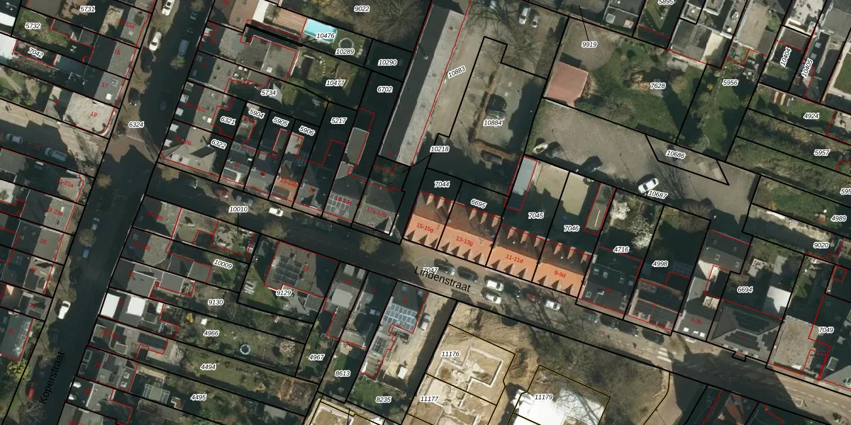 Het perceel waarop Lindenstraat 15-c staat heeft een oppervlakte van 163 m². Dit is een middelgroot perceel. De perceeloppervlakte wordt geregistreerd door het Kadaster. Gedetailleerde informatie over de maten van dit perceel kunt u vinden in het rapport Kadastrale kaart met maatvoering van Lindenstraat 15-c.