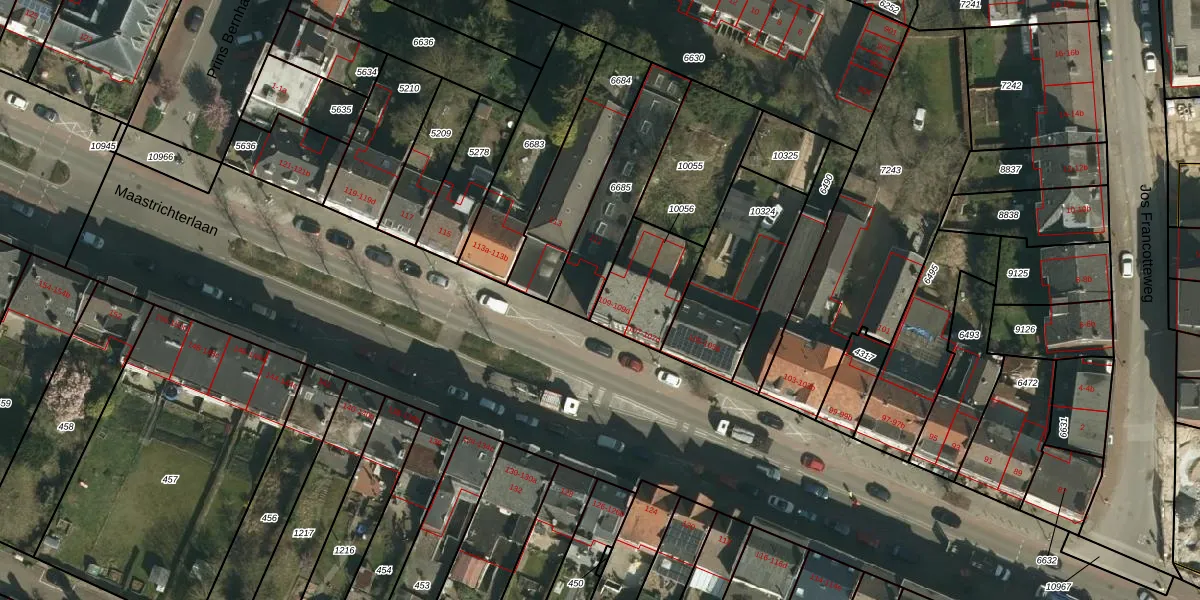 Maastrichterlaan 109-b is gelegen op kadastraal perceel VAA00A10056. Deze kadastrale aanduiding is uniek en wordt gebruikt door het Kadaster om eigendomsrechten en andere zakelijke rechten vast te leggen. Het perceel maakt onderdeel uit van de kadastrale gemeente Vaals.