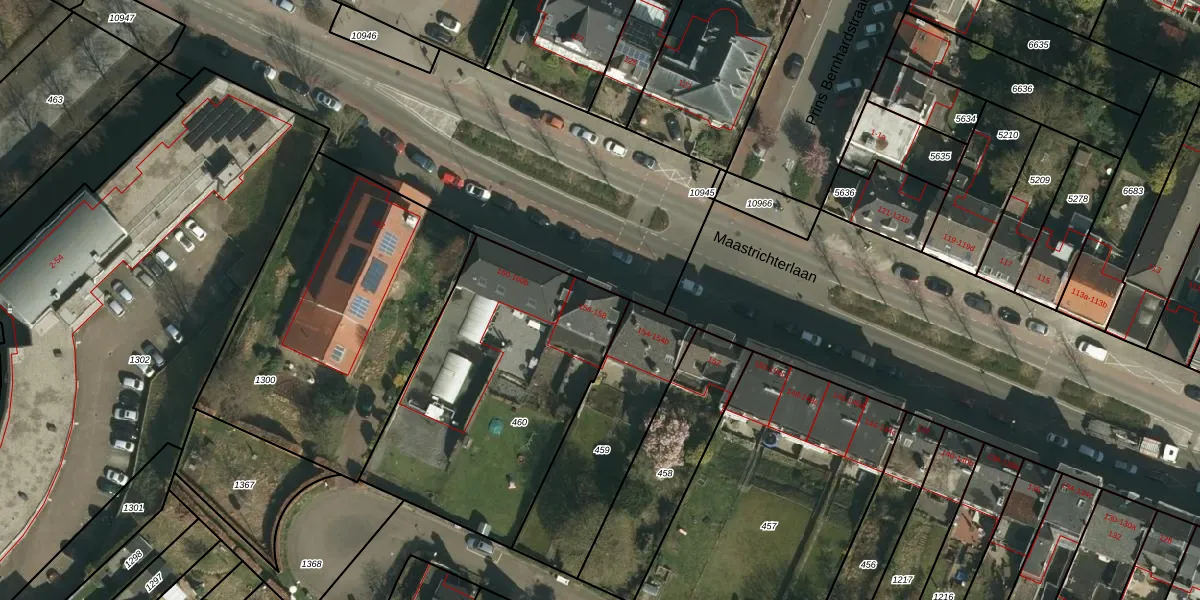 Het perceel waarop Maastrichterlaan 156 staat heeft een oppervlakte van 1270 m². Dit is een zeer groot perceel. De perceeloppervlakte wordt geregistreerd door het Kadaster. Gedetailleerde informatie over de maten van dit perceel kunt u vinden in het rapport Kadastrale kaart met maatvoering van Maastrichterlaan 156.