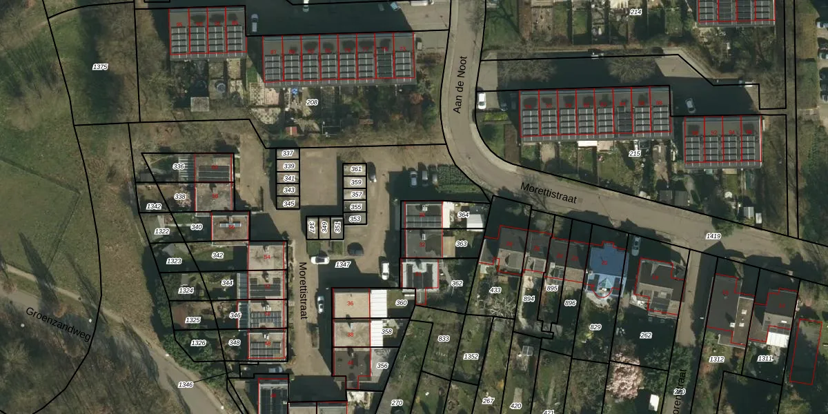 Gebruik de zoekbalk of klik op een perceel voor informatie over de adressen binnen dit perceel.