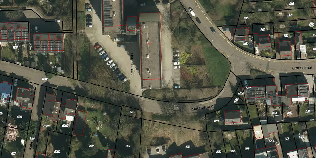 Het perceel waarop Morettistraat 906 staat heeft een oppervlakte van 8100 m². Dit is een zeer groot perceel. De perceeloppervlakte wordt geregistreerd door het Kadaster. Gedetailleerde informatie over de maten van dit perceel kunt u vinden in het rapport Kadastrale kaart met maatvoering van Morettistraat 906.