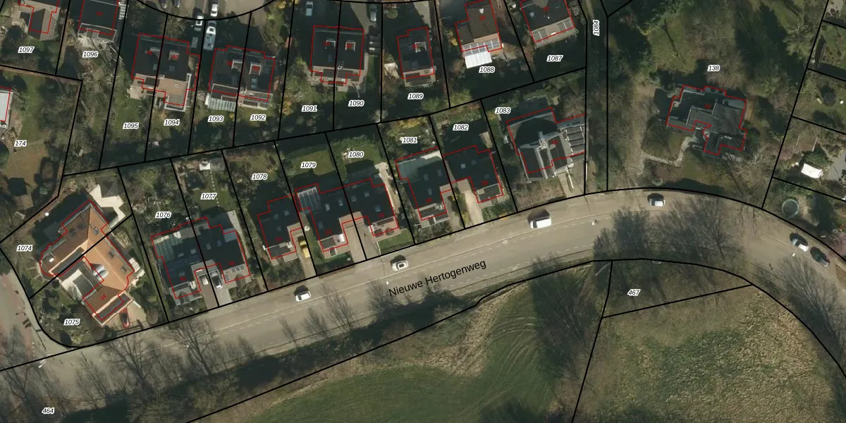 Gebruik de zoekbalk of klik op een perceel voor informatie over de adressen binnen dit perceel.