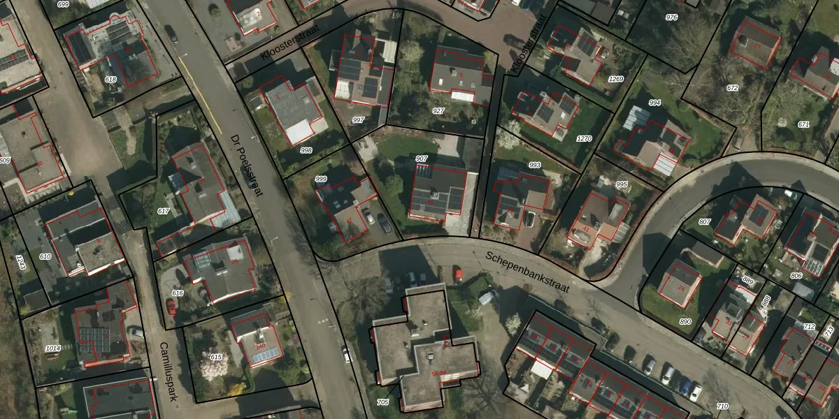 Het perceel waarop Schepenbankstraat 45 staat heeft een oppervlakte van 620 m². Dit is een groot perceel. De perceeloppervlakte wordt geregistreerd door het Kadaster. Gedetailleerde informatie over de maten van dit perceel kunt u vinden in het rapport Kadastrale kaart met maatvoering van Schepenbankstraat 45.