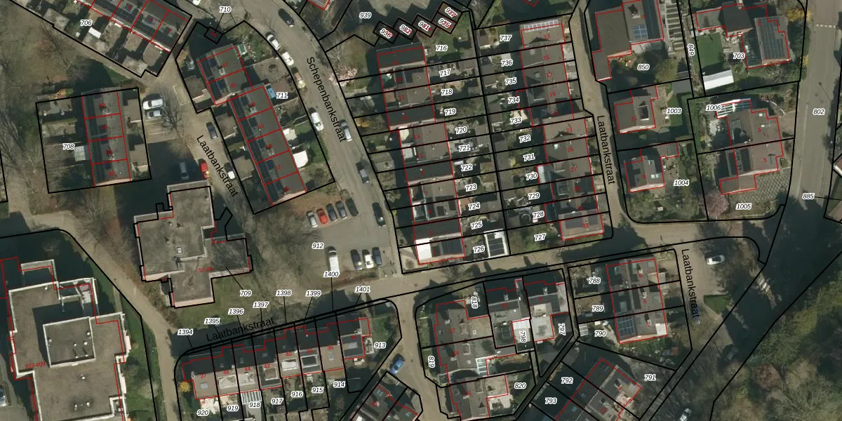 Gebruik de zoekbalk of klik op een perceel voor informatie over de adressen binnen dit perceel.