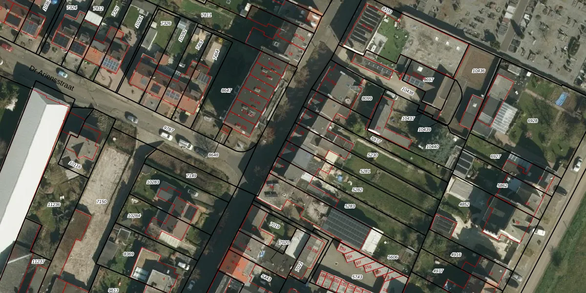 Gebruik de zoekbalk of klik op een perceel voor informatie over de adressen binnen dit perceel.