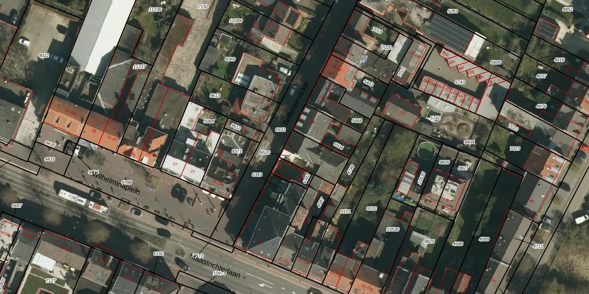 Gebruik de zoekbalk of klik op een perceel voor informatie over de adressen binnen dit perceel.
