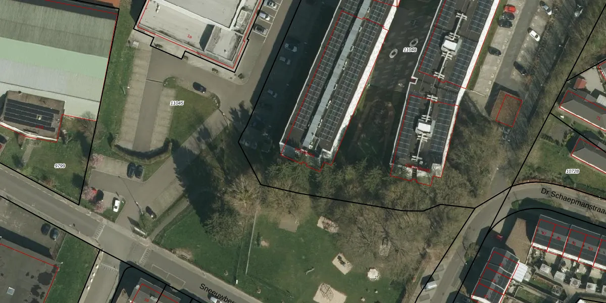 Het perceel waarop Sneeuwberglaan 1-s-29 staat heeft een oppervlakte van 9110 m². Dit is een zeer groot perceel. De perceeloppervlakte wordt geregistreerd door het Kadaster. Gedetailleerde informatie over de maten van dit perceel kunt u vinden in het rapport Kadastrale kaart met maatvoering van Sneeuwberglaan 1-s-29.