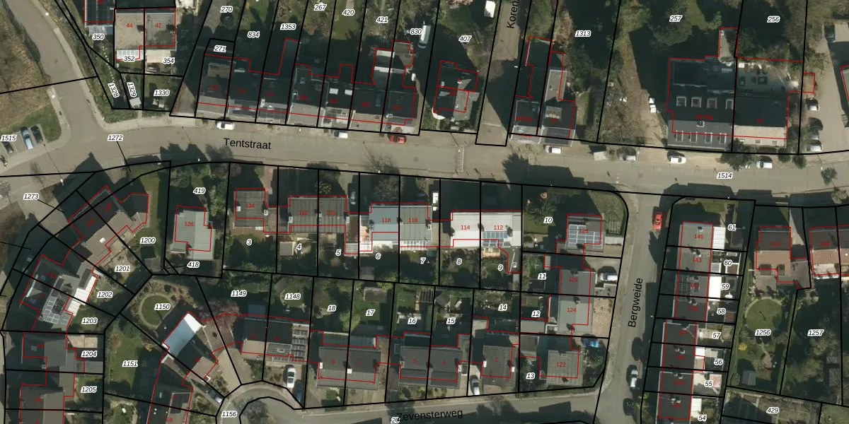 Gebruik de zoekbalk of klik op een perceel voor informatie over de adressen binnen dit perceel.