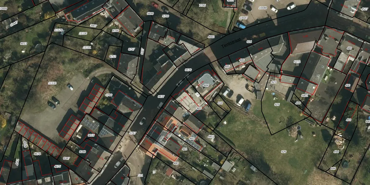 Tentstraat 16 is gelegen op kadastraal perceel VAA00H483. Deze kadastrale aanduiding is uniek en wordt gebruikt door het Kadaster om eigendomsrechten en andere zakelijke rechten vast te leggen. Het perceel maakt onderdeel uit van de kadastrale gemeente Vaals.