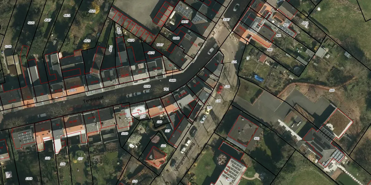 Tentstraat 34-a is gelegen op kadastraal perceel VAA00E781. Deze kadastrale aanduiding is uniek en wordt gebruikt door het Kadaster om eigendomsrechten en andere zakelijke rechten vast te leggen. Het perceel maakt onderdeel uit van de kadastrale gemeente Vaals.