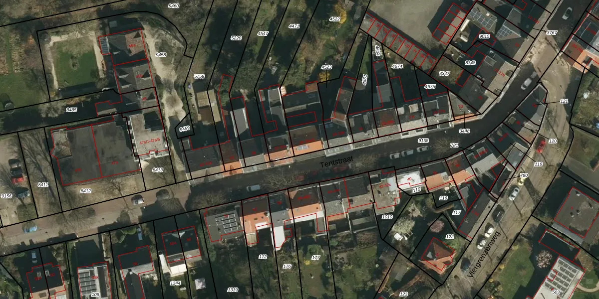 Tentstraat 35-s-1 is gelegen op kadastraal perceel VAA00A4522. Deze kadastrale aanduiding is uniek en wordt gebruikt door het Kadaster om eigendomsrechten en andere zakelijke rechten vast te leggen. Het perceel maakt onderdeel uit van de kadastrale gemeente Vaals.